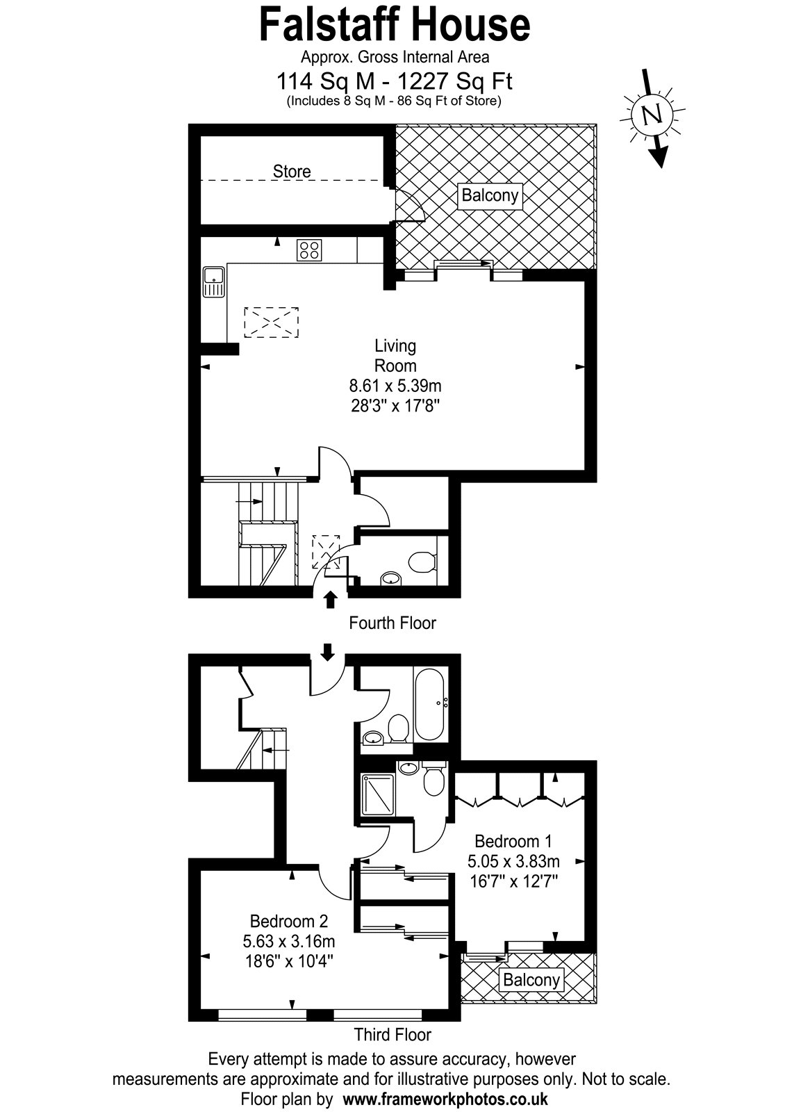 Both double bedrooms are well-proportioned, with one benefiting from an en-suite and the other served by the family bathroom. Smart storage solutions are thoughtfully integrated across all rooms and levels.