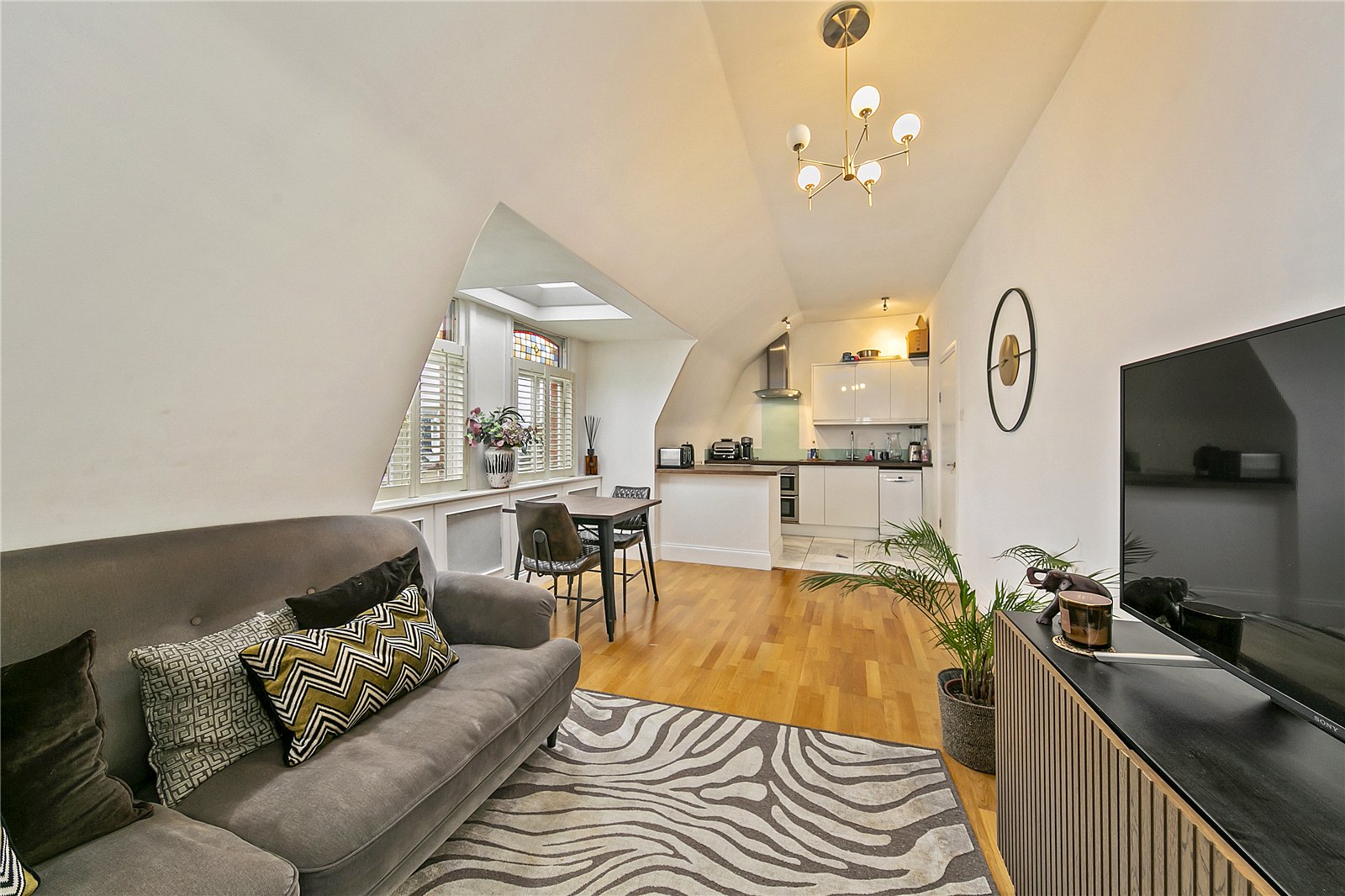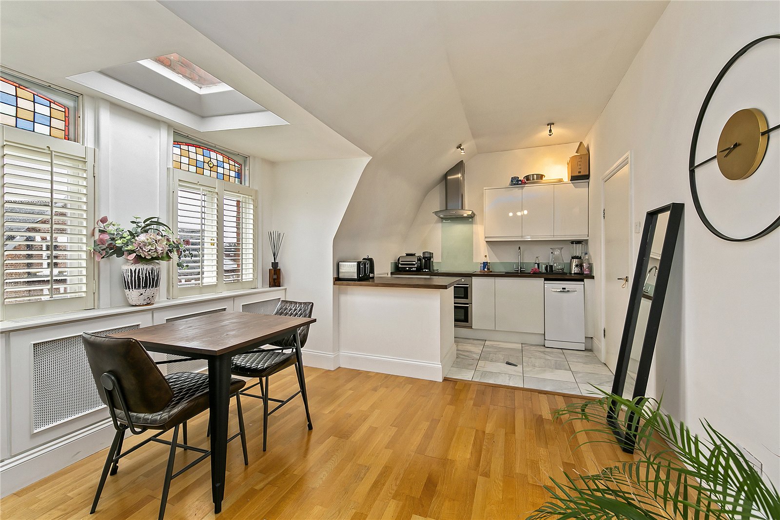 Inside, the flat is beautifully decorated, hosts two bedrooms, both with storage and light, bright reception room with open plan kitchen. The apartment also offers it’s own private roof terrace for enjoying sunshine and al fresco dining in the summer.