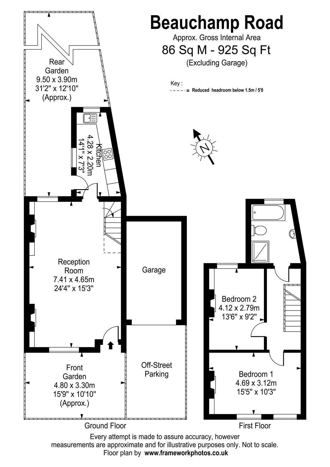 Inside you are welcomed by a wide and spacious reception room leading to kitchen overlooking the rear garden. Upstairs, two double bedrooms and unusually large bathroom.