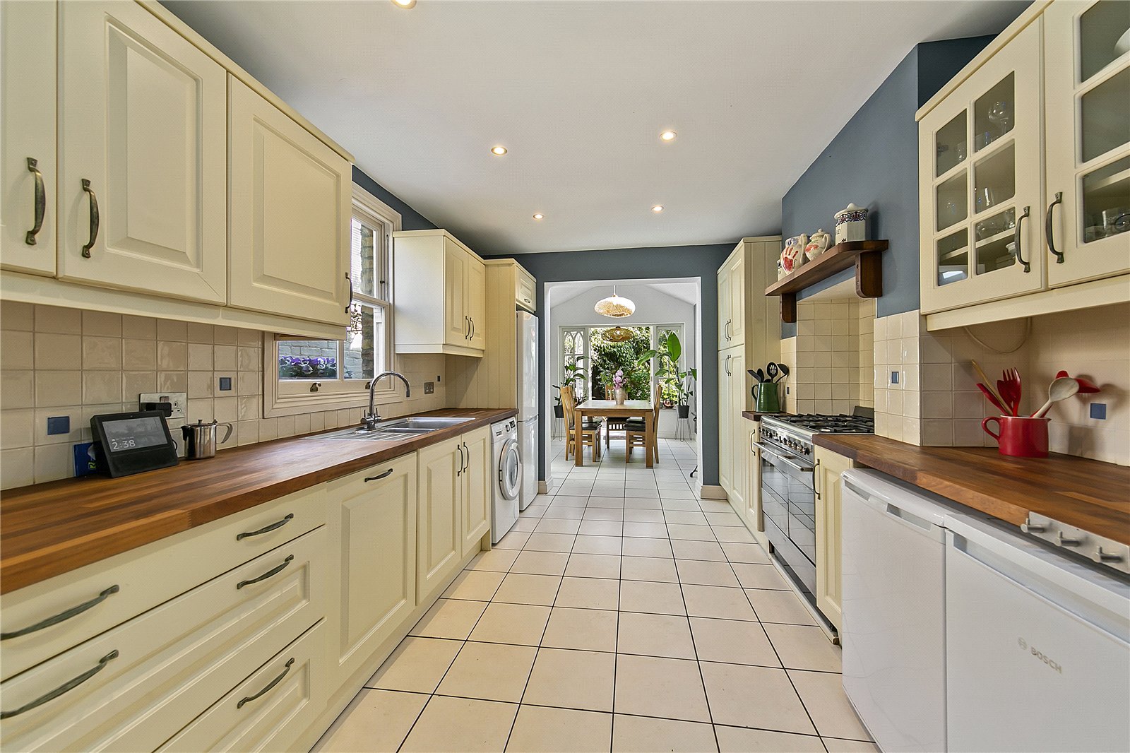 On the ground floor the entrance hall leads first to a wide, double-reception room with bay window to the front aspect. Along the hall is a WC and then the kitchen, which leads to an extended dining room, in turn opening onto the wonderful rear garden.