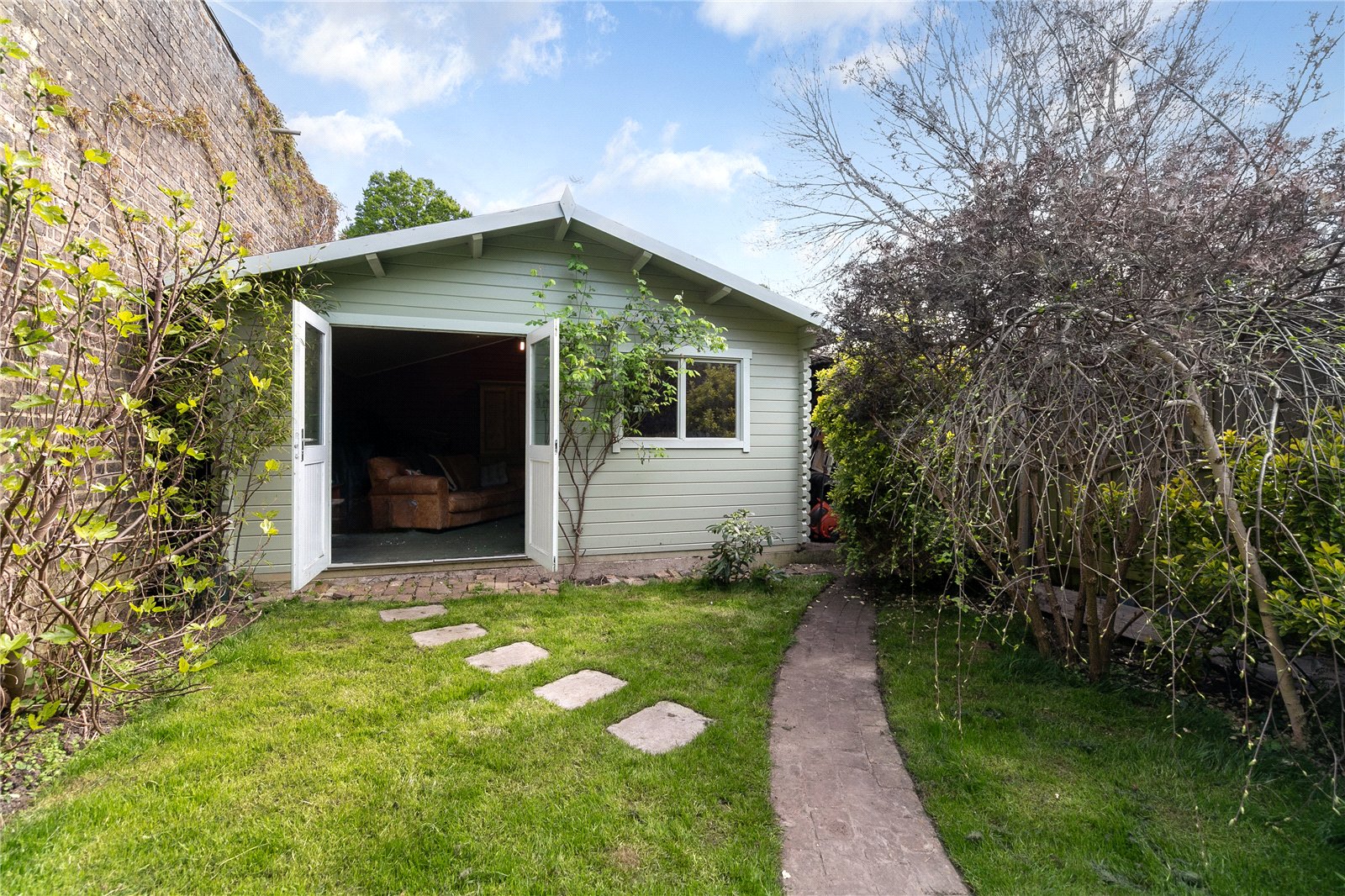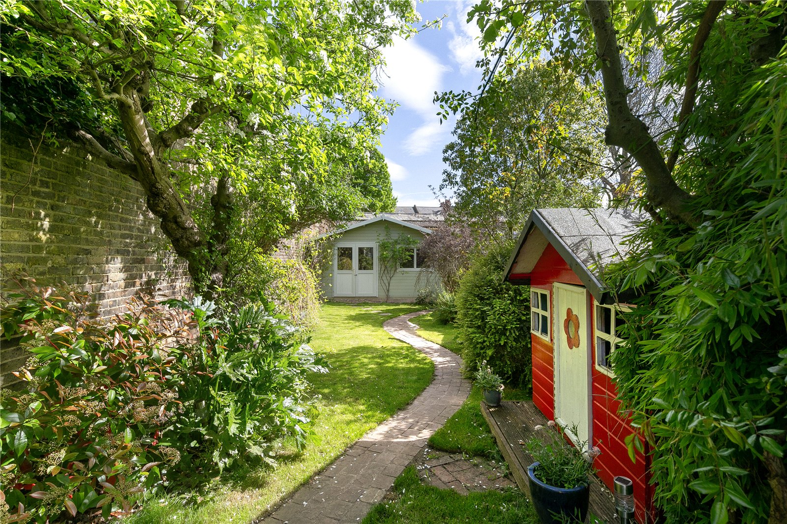 The charming and well-tended garden is fantastic, boasting a selection of trees, plants and flowers, perfect for a family with children or anyone with green fingers. At the end of the winding path is a secluded garden room, making a great home office or play area.