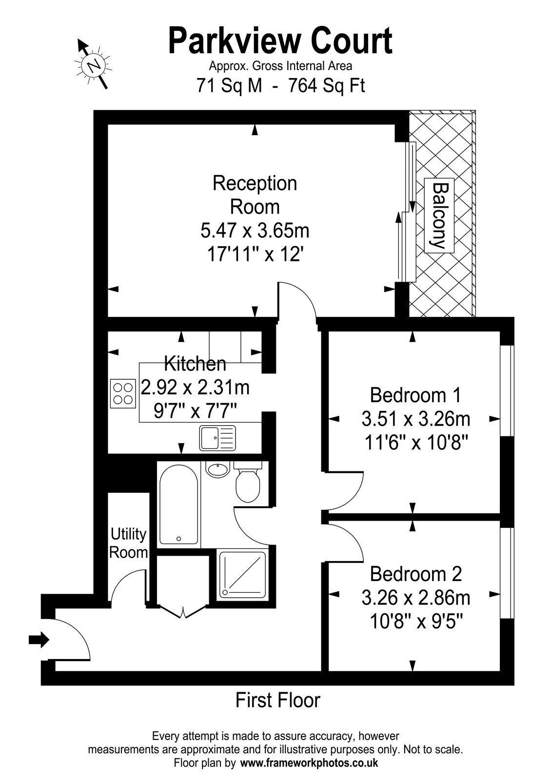 2 Bedrooms, 1 Reception, 1 Bathroom