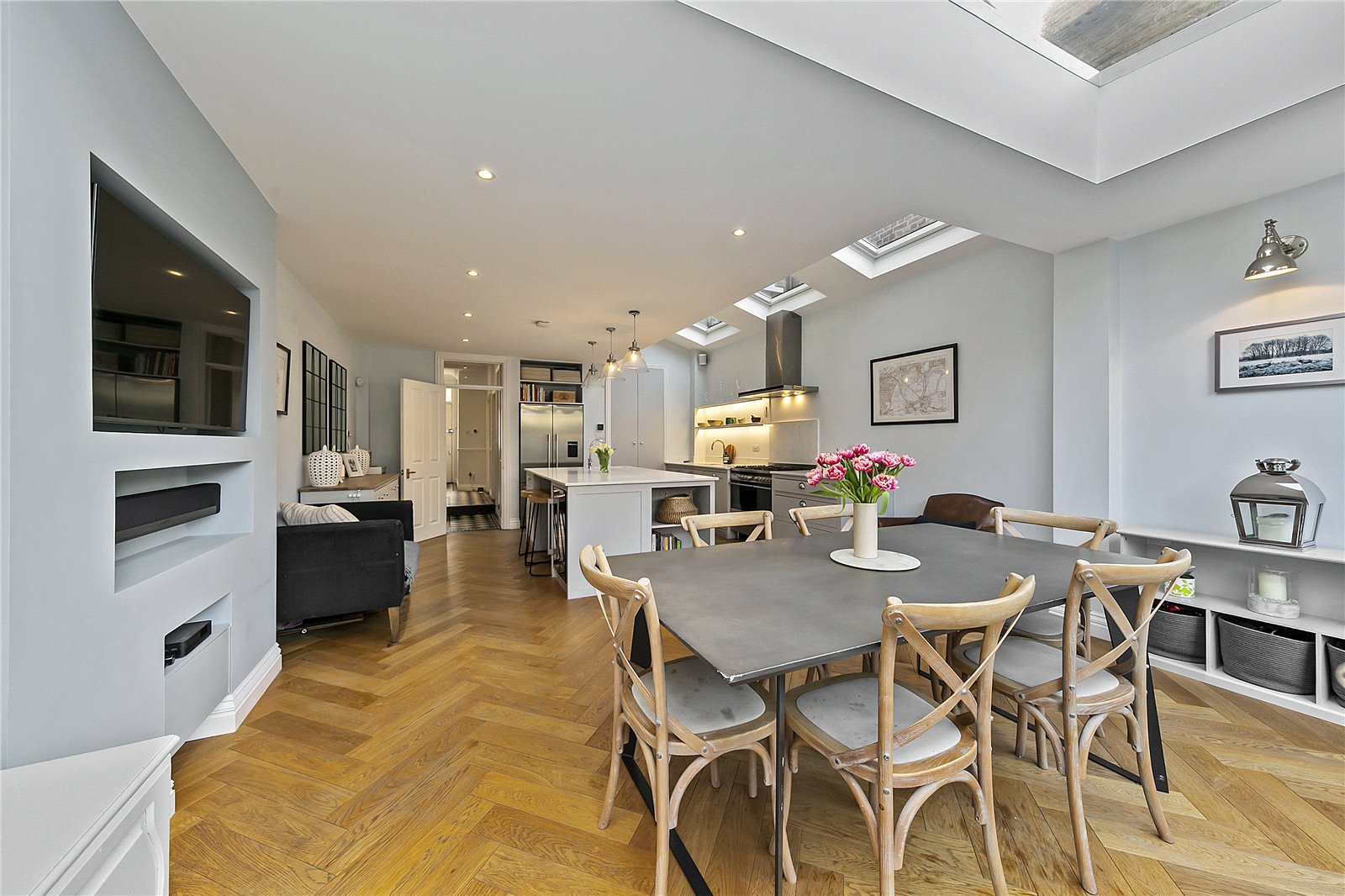 Offering a perfect blend of period features and modern convenience (including Cat6 installed for seamless working from home), this outstanding family home has generous proportions arranged over three floors and features a large living room, stunning kitchen/family/dining room with underfloor heating, utility room and cloakroom/WC on the ground floor.