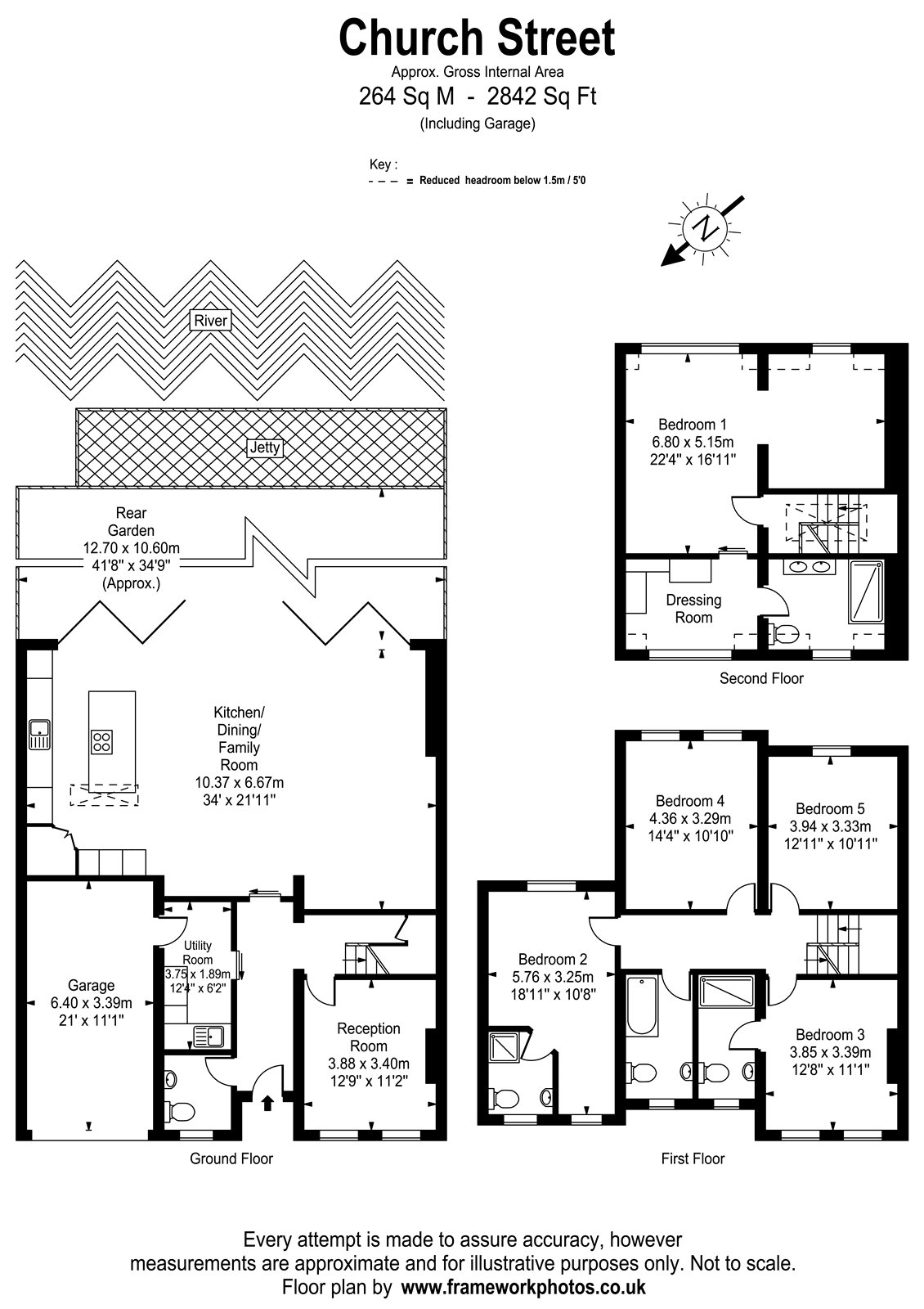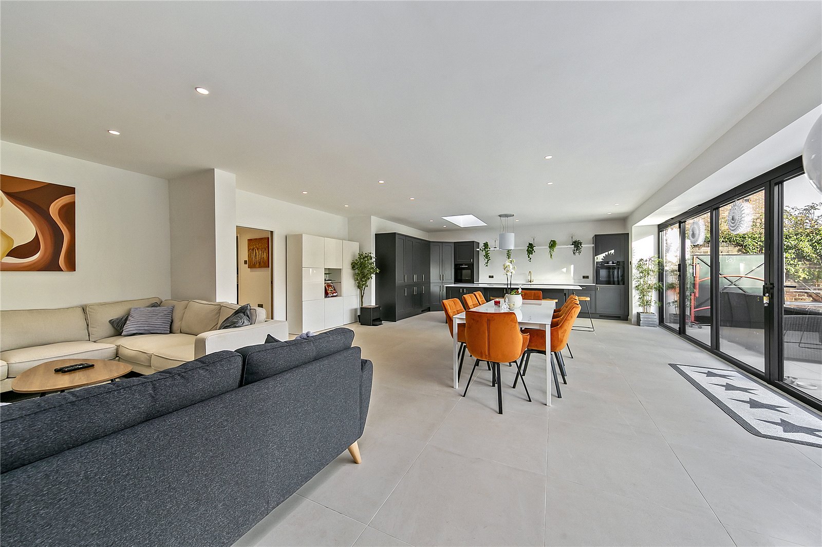As soon as you enter, this luxurious home offers welcoming front reception room with cosy feel, a handy utility room leading to the garage and downstairs WC. The focal point of the home is the impressive and expansive reception room at the back though. This beautiful room overlooking the Thames hosts a stunning new kitchen, glass doors to the garden and room for large dining space and sitting area.