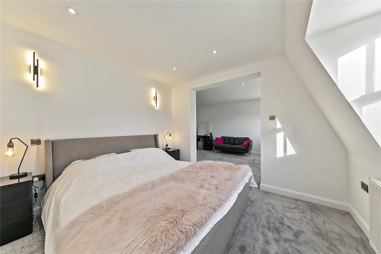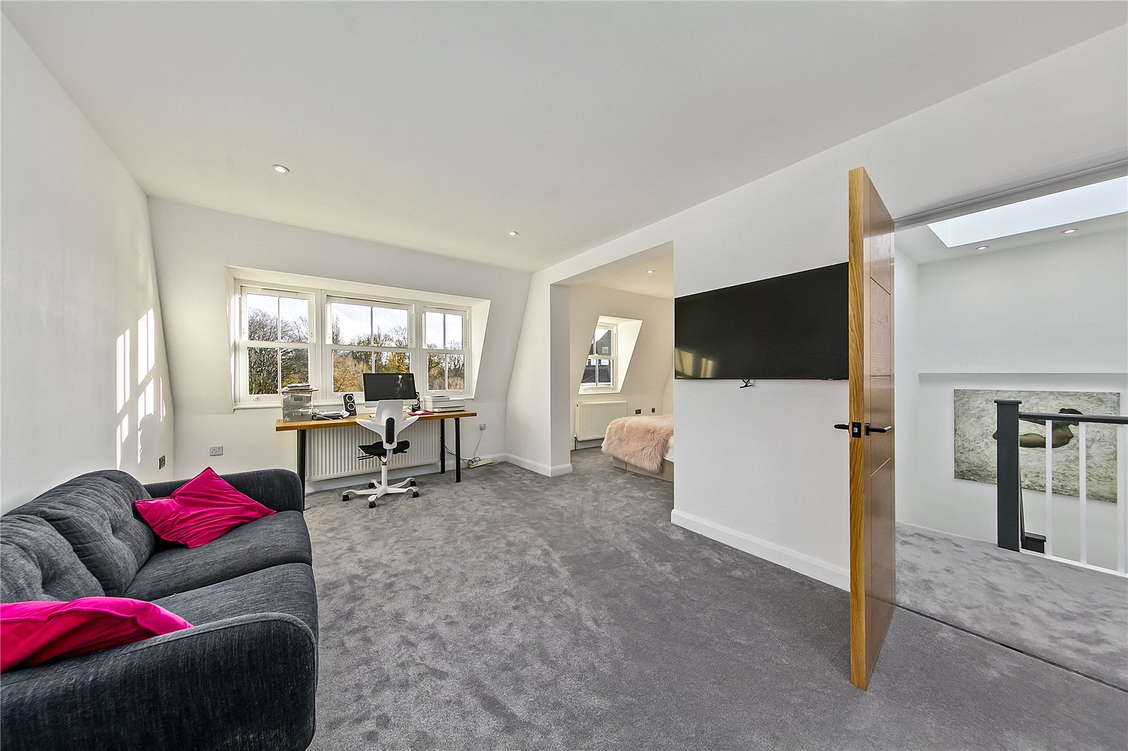 The top floor hosts a beautiful master suite with dressing room, walk in wardrobe, sitting area and bedroom. With dual aspect and incredible views over the West London stretch of the River looking towards Kew and Richmond riversides.