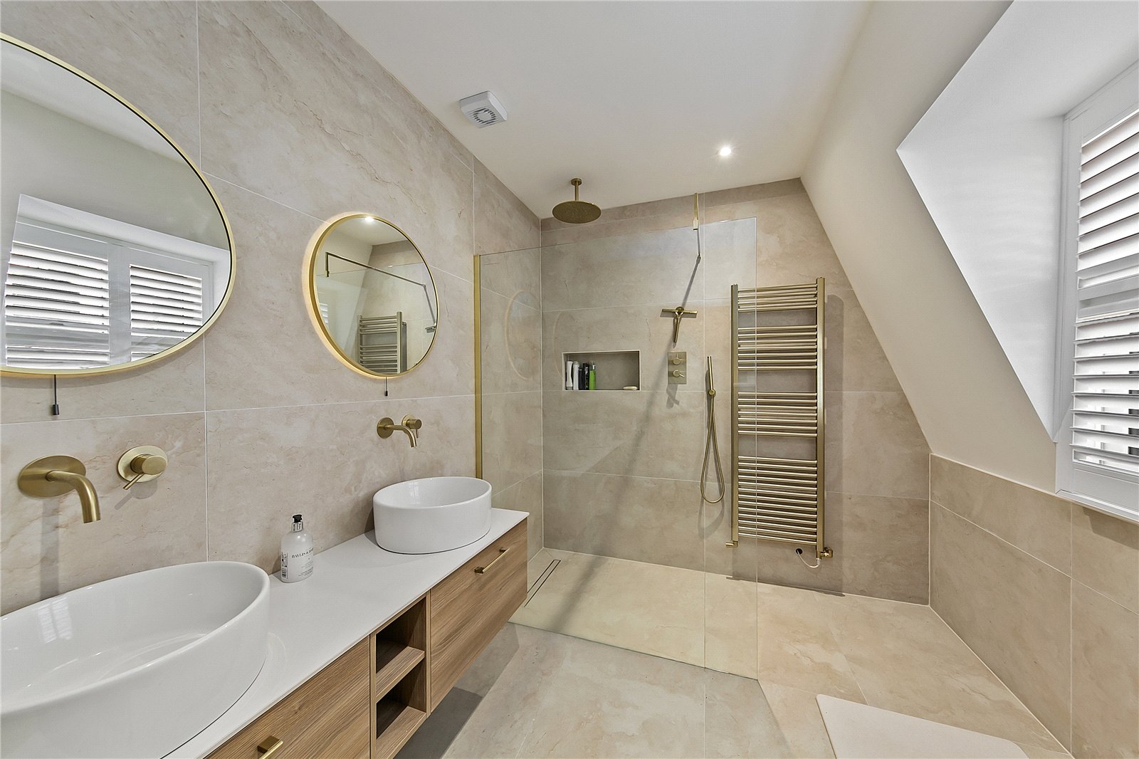 Upstairs hosts four impressive, double bedrooms, two with en suite bathrooms and all with ample room for storage and wardrobes. There is also 130 sq ft of storage in the attic, perfect for Christmas decorations and suitcases.