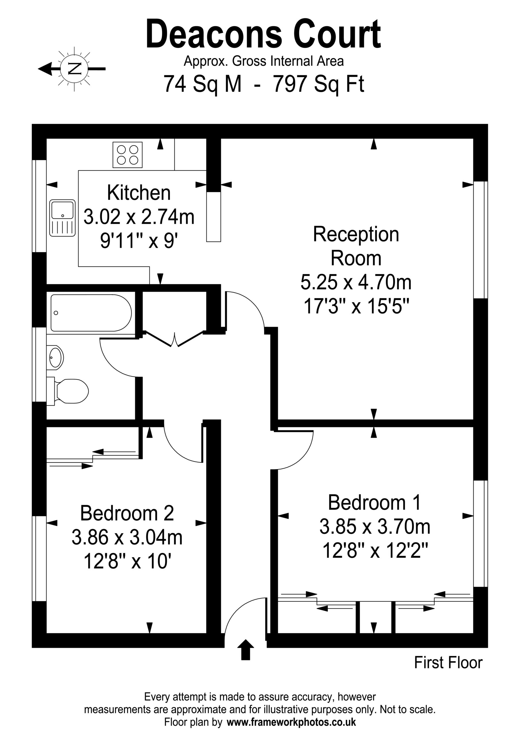 2 Bedrooms, 1 Reception, 1 Bathroom