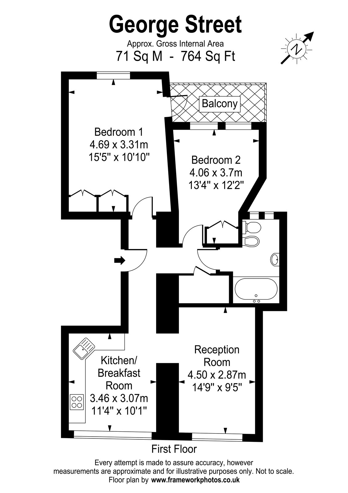 2 Bedrooms, 1 Reception, 1 Bathroom