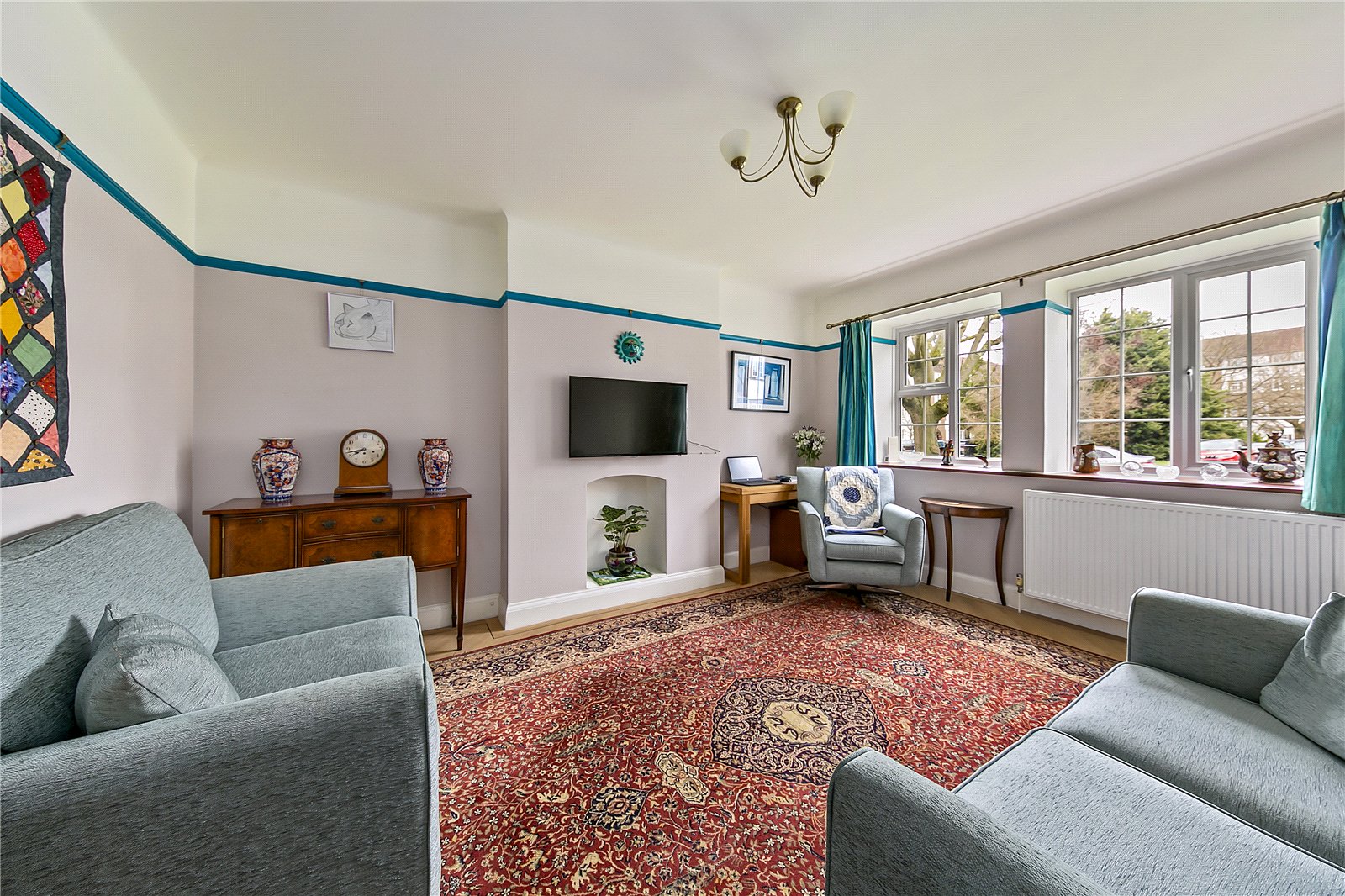 The property, which forms part of this highly regarded 1930s mansion style development, is presented to exacting standards and has been significantly improved internally with ‘Amtico’ flooring throughout, affording well proportioned accommodation including a spacious reception room and ‘dining hall’, a modern kitchen and bathroom plus an additional en-suite wc to the master bedroom. The property also features magnificent aspects to the front across the ‘park-like’ communal lawns and bright westerly views to the rear as well as residents’ and visitor off street parking. Located within easy reach of Kew Gardens underground station, Kew village shops, Kew Green with its many attractions and the Victoria Gate entrance to the Royal Botanic Gardens.