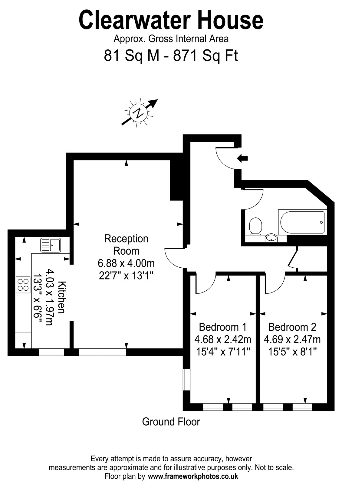 2 Bedrooms, 1 Reception, 1 Bathroom