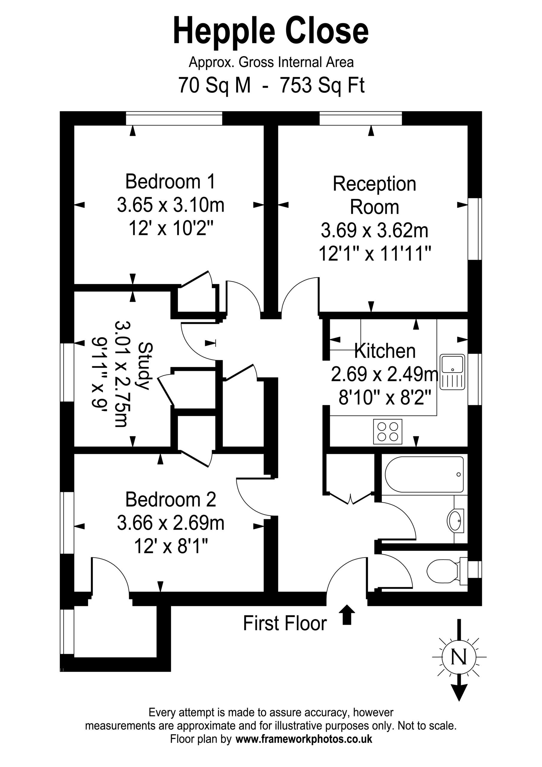 The accommodation comprises, spacious reception room, two double bedrooms, study, bathroom, separate w/c and fitted kitchen.