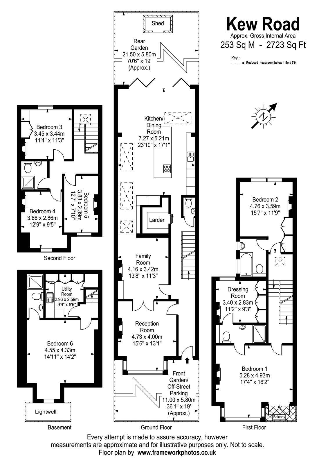 The first floor benefits from a spacious master bedroom with en-suite leading through to a dressing room, a further double bedroom and a family bathroom. The second floor comprises three double bedrooms and a shower room.