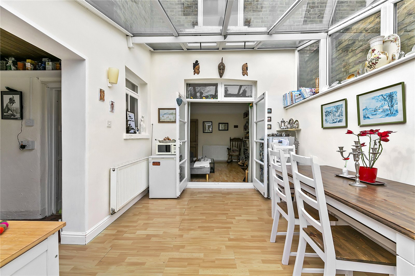 This rare property occupies the whole of the ground floor of this substantial converted house and has exclusive use and ownership of the garden and also benefits from shared use of the parking bay and a share of the freehold. It provides generous accommodation of about 800 sq.ft including a particularly large bay-fronted principal bedroom. It is likely that buyers will wish to upgrade aspects of the property and there is scope to extend if required, subject to the usual consents. Larkfield Road is a sought-after residential street of attractive period properties accessed from lower Church Road moments from the town centre and station.