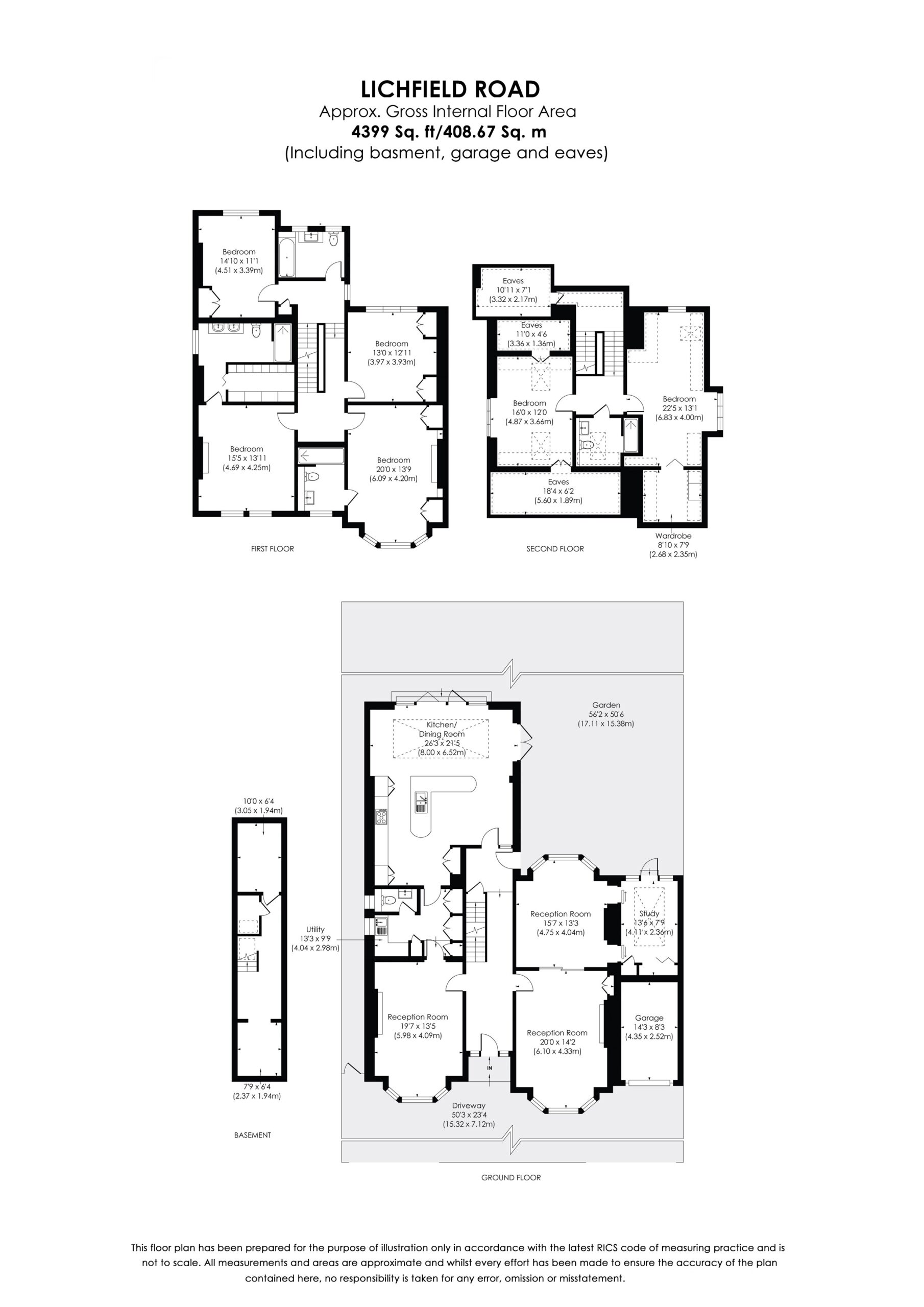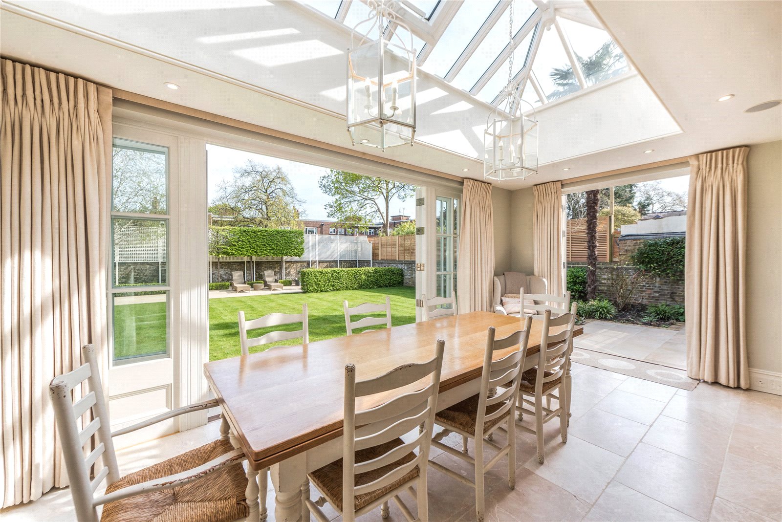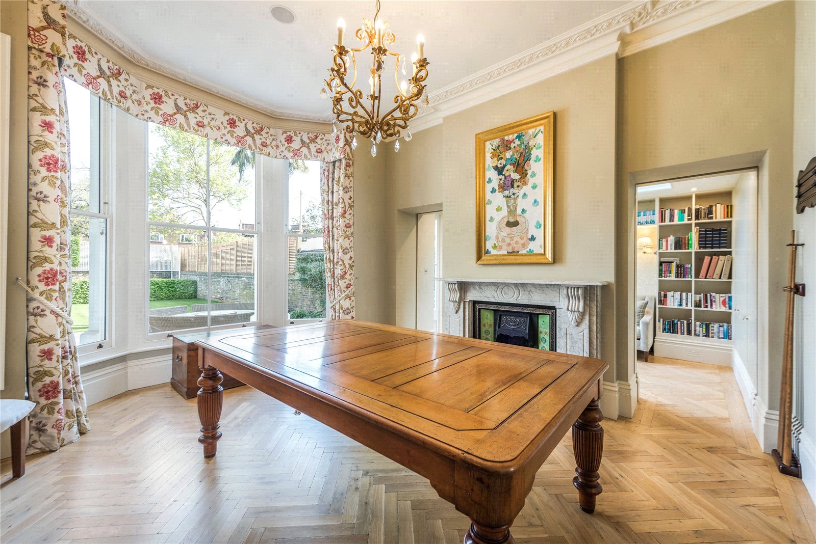 This superb detached property offers glorious period proportions and stunning interior design. Its position on Lichfield Road combined with the house’s considered layout, lateral footprint and exquisite style make it one of Kew’s most significant family homes. The house benefits from well balanced living and bedroom accommodation arranged over three floors with the ground level including a generous entrance hallway, a double reception room complete with marble fireplaces, ornate ceiling mouldings and a bay doorway leading to the rear garden. There is a large dining room, also benefiting from the original Victorian features, as well as a beautifully extended kitchen/family room overlooking the garden. A separate study, cloakroom and utility room completes the ground floor. The six double bedrooms are arranged over the first and second floors with the impressive master bedroom complete with dressing room and a beautiful en-suite bathroom. In addition, there are three further family bathrooms with many fitted wardrobes and storage options throughout both levels. Outside there is a carriage driveway to the front, attached garage and a magnificent lawned garden to the rear.