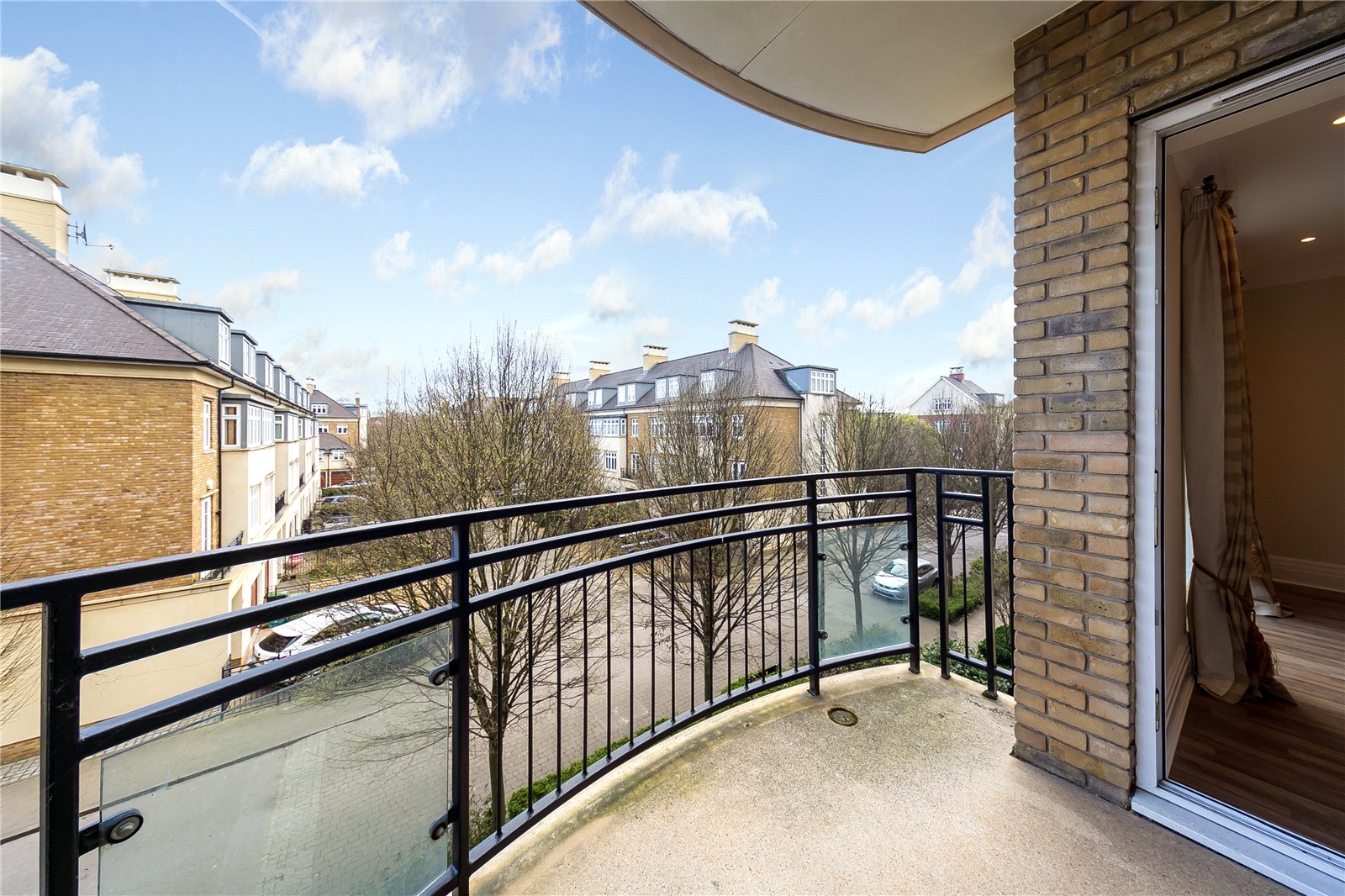 Reception room with wood floors and door to balcony, master bedroom with wardrobe and ensuite bathroom, further shower room and fully fitted kitchen. Use of residents gym and pool facilities.