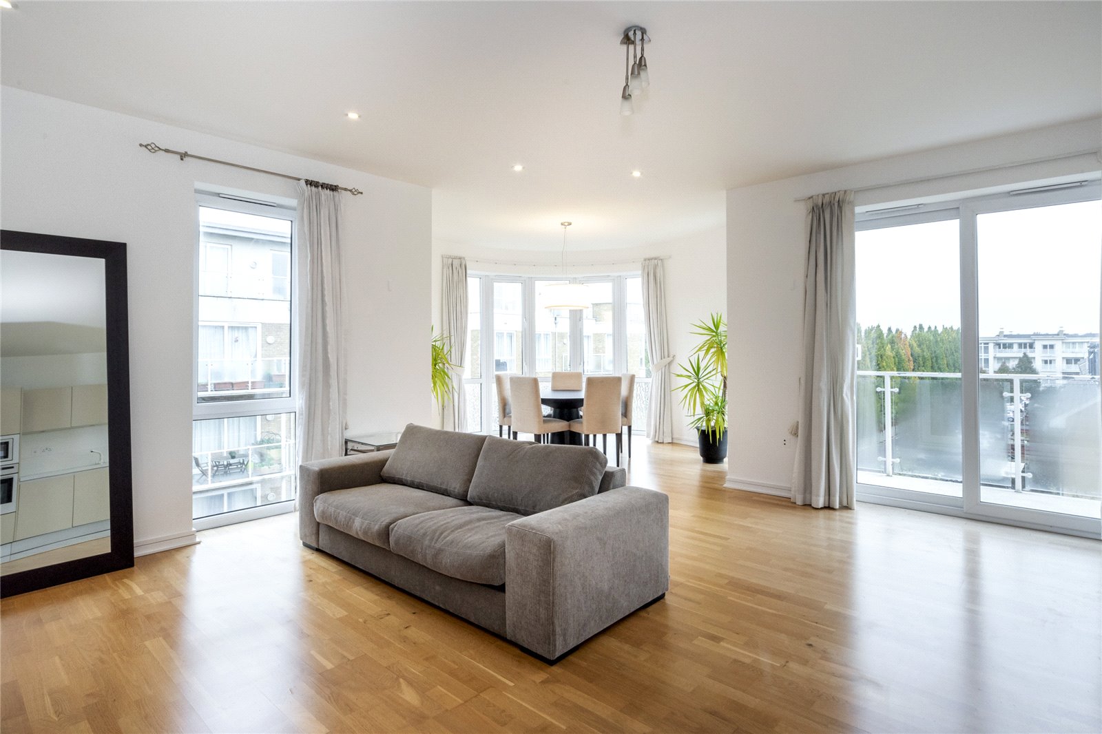A superior third floor luxury flat located within this striking apartment building in the exclusive Kew Riverside development. The property, which offers an extremely bright and generous layout with elevated views, features a highly contemporary interior presented to an exemplary standard. Featuring a magnificent reception room/rotunda shaped dining room with open plan appliance equipped kitchen, two beautifully appointed bathrooms, two double bedrooms (both with wardrobes) together with additional storage facilities. Further benefits include a private balcony, underground car parking, wonderful communal riverside grounds and an on-site residents’ health and leisure complex including swimming pool and gymnasium. Situated conveniently moments from the River Thames tow path and within easy reach of Kew Gardens underground station and local shopping amenities.