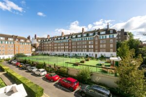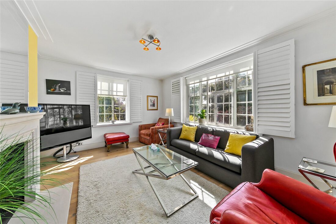 A superb three-bedroom second floor lift-serviced apartment in a prime front corner position of this prestigious mansion building on Richmond Hill offering lovely south-westerly views.