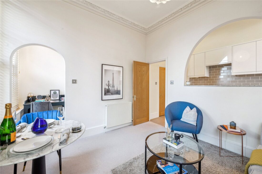 EPC: D The property is presented to a very good standard and offers a bright interior layout with high corniced ceilings and original tall sash windows. The property features a reception/dining room with further recessed study area, contemporary and recently fitted kitchen and well appointed bathroom. There is also a communal laundry basement. Situated moments from the atmospheric shops and restaurants around the parade and short walking distance of Kew Gardens underground station and the Victoria Gate entrance to the Royal Botanic Gardens.