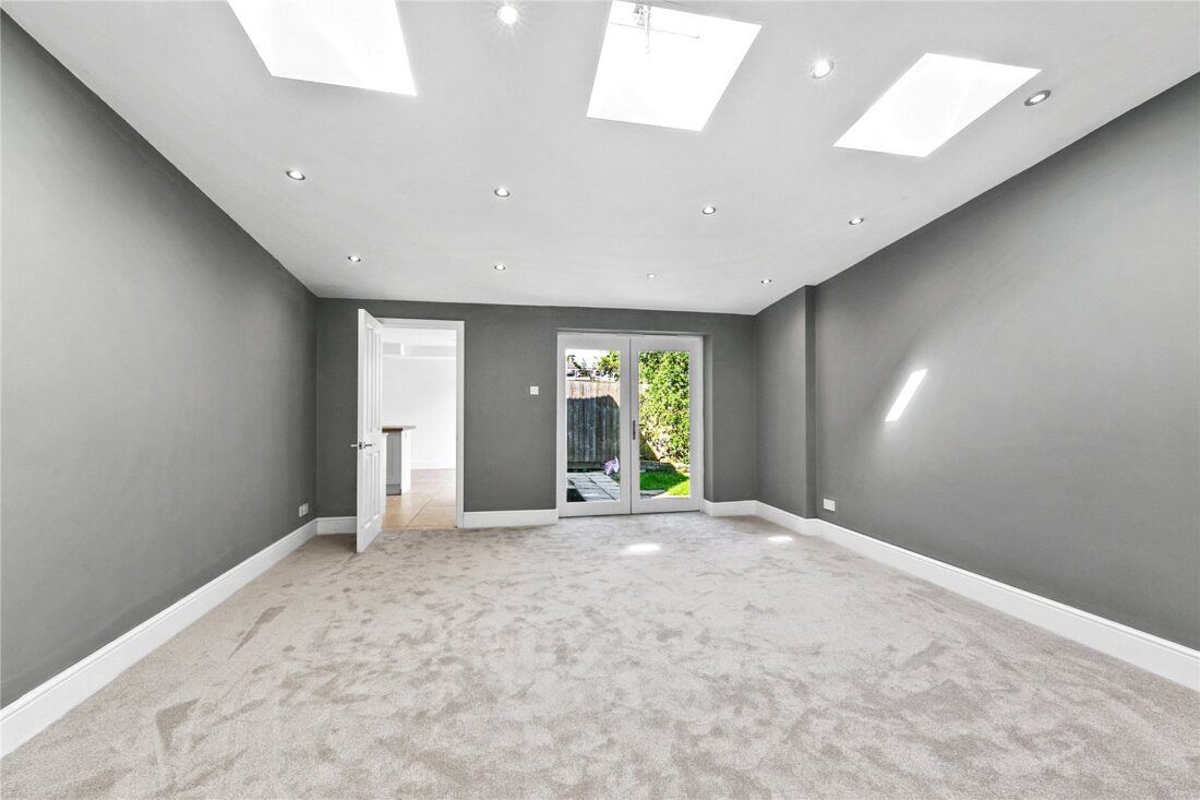 This excellent family home offers generous and versatile accommodation of 1876 sq. ft. including 5 bedrooms, 3 bathrooms and a downstairs cloakroom. In addition to the elegant double reception room and well fitted kitchen/dining room with bi-folding doors opening to the garden, the house has the rare benefit of another large, separate living room (approx. 19’x 15′) off the kitchen ideal for family living. The carpets are brand new throughout and al walls have been freshly decorated. Bustling central Richmond is moments away and offers a wide and sophisticated range of shops restaurants and pubs, two cinemas and a renowned theatre set on the picturesque Green. There is also a beautiful stretch of the river Thames and the 2500 acres of wonderful Richmond Park to enjoy. The station is only a short walk away and has a fast and frequent mainline service to London Waterloo and also the District line tube and Overground serving North London. There are some excellent schools very locally both state and private including The Unicorn School and The Falcon Preparatory School. EPC: E