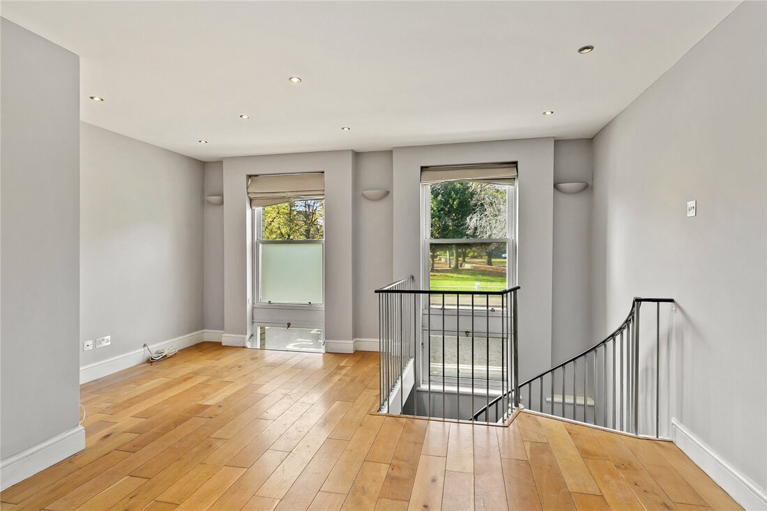 A large split level three bedroom, two bathroom flat with private entrance located a short walk from Mortlake Station, the River Thames and opposite Mortlake Green.