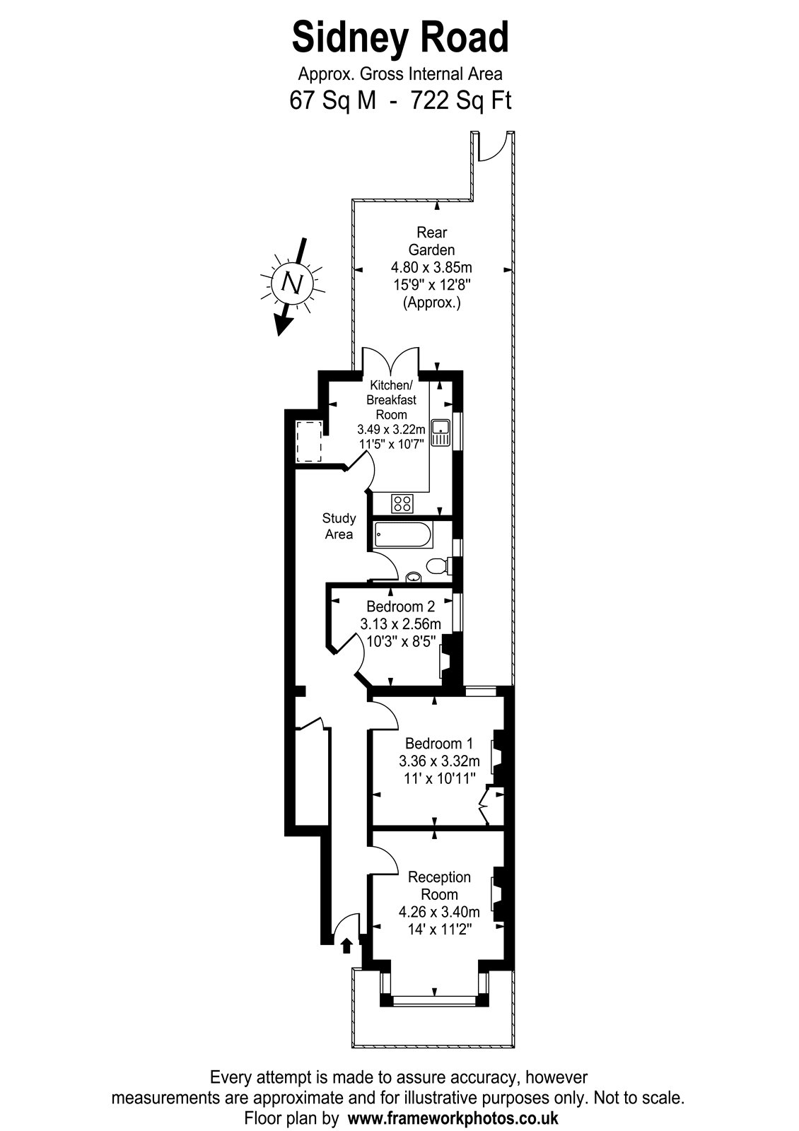 2 Bedrooms, 1 Reception, 1 Bathroom