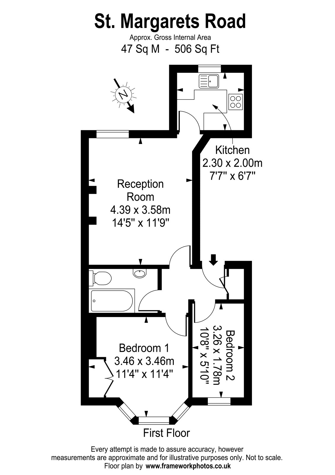 2 Bedrooms, 1 Reception, 1 Bathroom