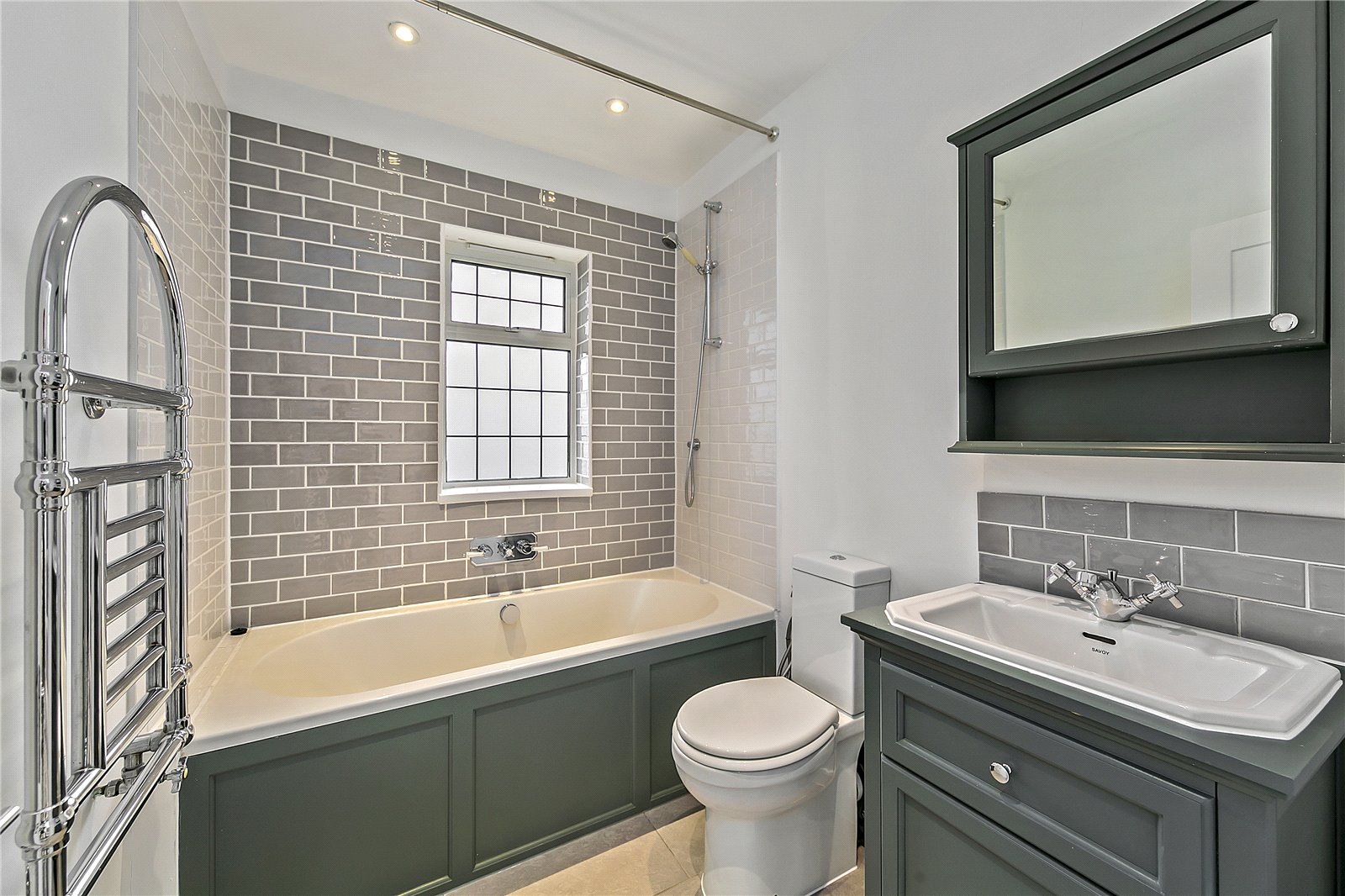The ground floor features a striking open-plan kitchen/dining/family space, enhanced by stylish exposed brickwork and industrial style beams. This versatile area is perfect for entertaining and everyday living, with bi-folding doors opening onto the sunny facing rear garden. Additional ground floor highlights include a practical utility room, guest WC, and a bright, inviting reception room with wooden flooring.