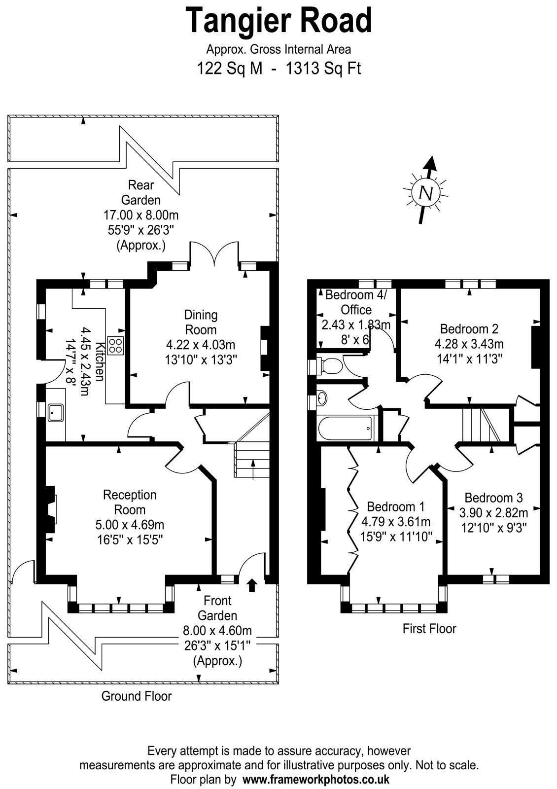 Impressive room sizes contribute to the overall feeling of light and space, with a wide hallway that welcomes you into what is a well-presented, practical family home. Two generous reception rooms and a fitted kitchen complete the ground floor accommodation, with three double bedrooms, a further good sized single, family bathroom and separate WC are to be discovered on the first floor.