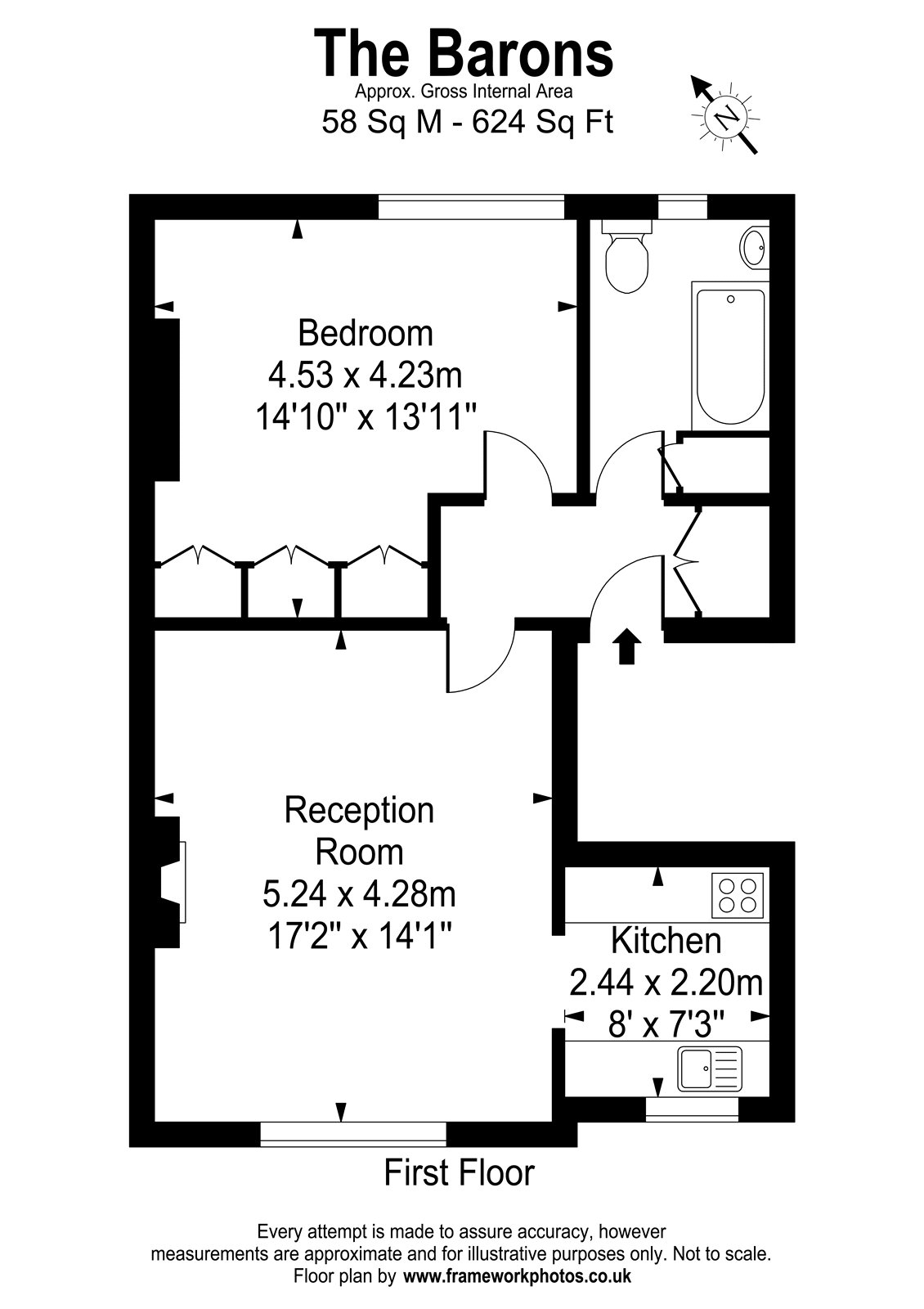 This amazing first floor one bedroom apartment boasts both a lounge and bedroom of grand proportions with high ceilings as well as a bright North-East/South-West aspect.