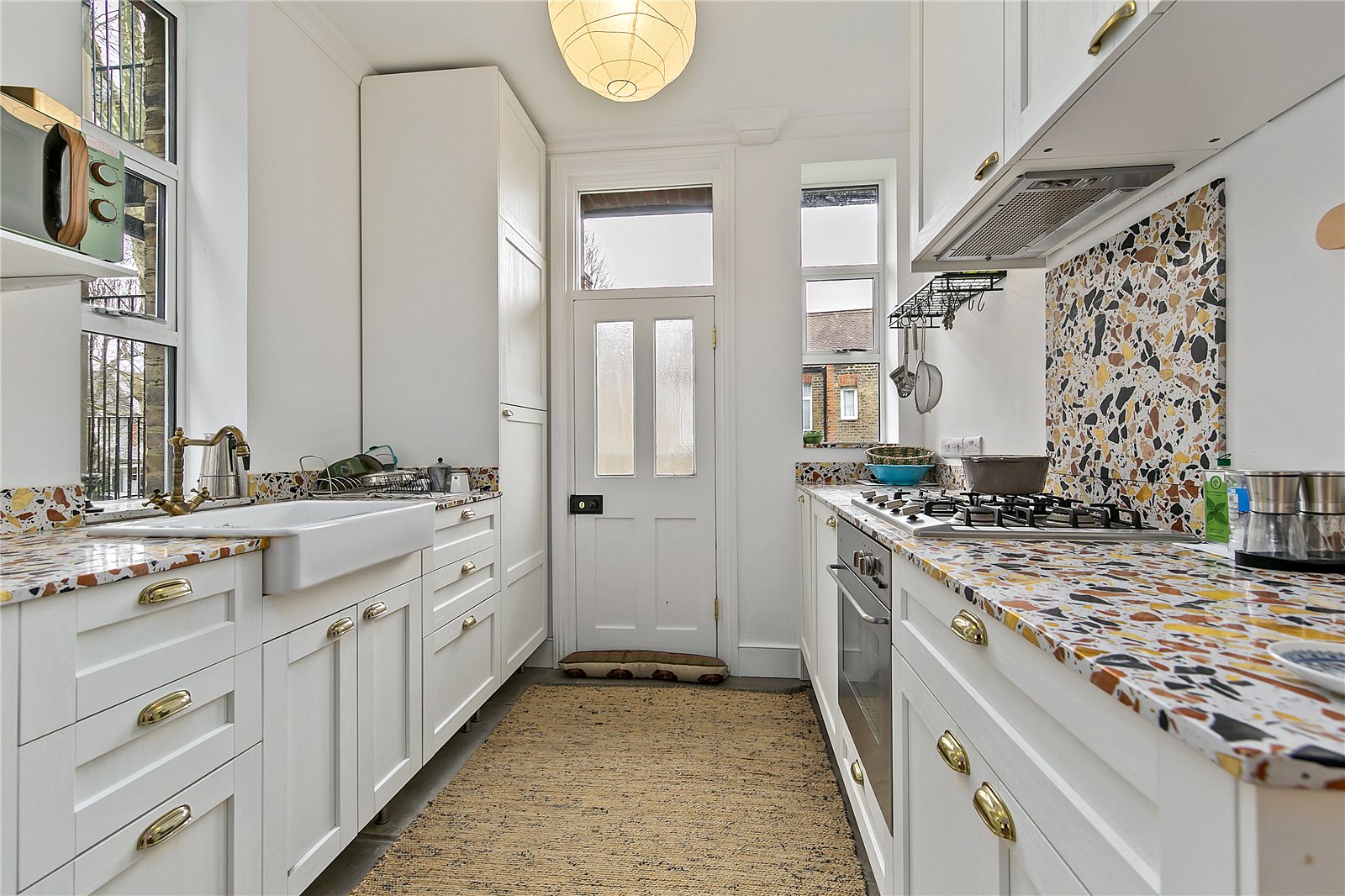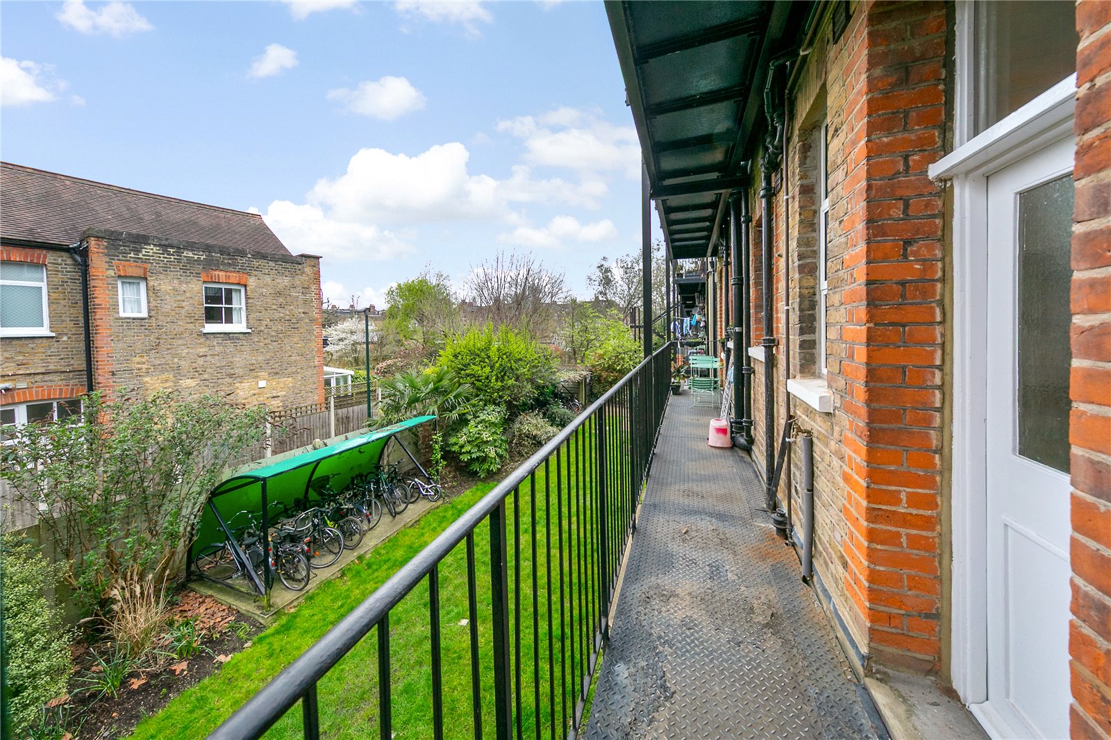 Located on the first floor, the accommodation provides two spacious double bedrooms and a large reception room with open fire. The modern kitchen is fully equipped and is open plan to a comfortably sized dining space which leads to the bathroom. From the kitchen, there is rear access to a balcony leading down to delightful , well cared for communal gardens and bike store.
