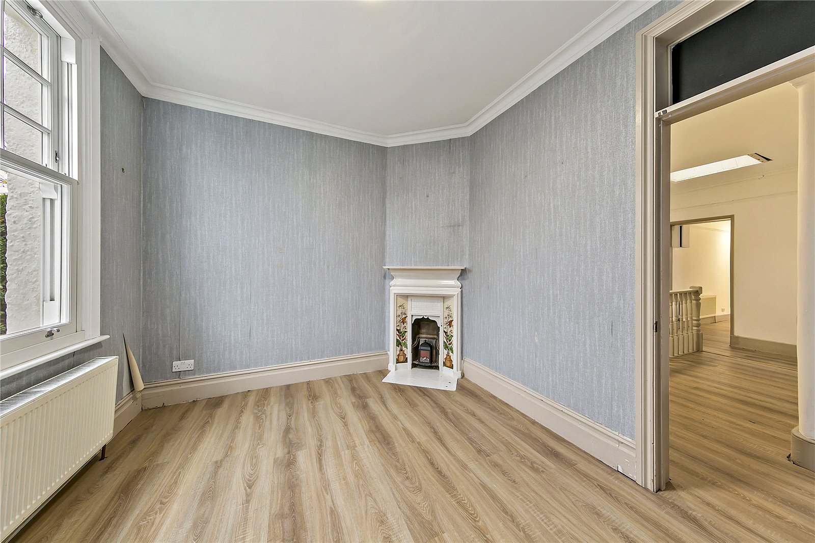 A large landing leads to three double bedrooms (the principal bedroom has spectacular proportions and is fitted with wardrobes along one wall), a light and bright main reception, bathroom and huge kitchen/dining room. This impressive property does benefit from recently installed double-glazed windows and has feature fireplaces to several rooms, but is in need of refurbishment in places.