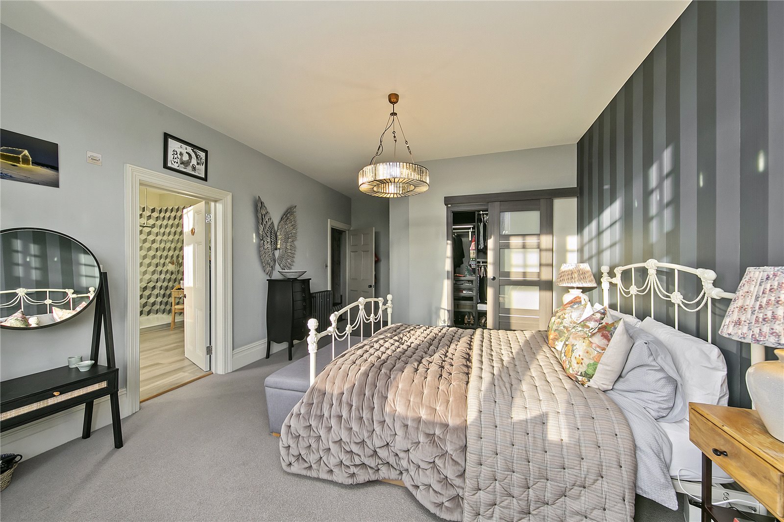 The living space includes three generous reception rooms, a modern and newly fitted kitchen/dining room, two studies and two utility rooms. The upper floors continue the spacious feel of the house, with high ceilings amd bright, well-sized rooms throughout offering six/seven bedrooms (three with en-suite bathrooms) and two additional family bathrooms.