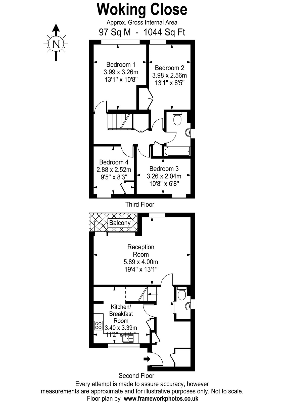 A split-level four bedroom maisonette, in need of some updating, with a private balcony and offered with no ongoing chain.